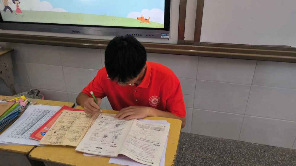 圖為蒲公英支教社會實踐團隊成員給孩子們批改作業。
