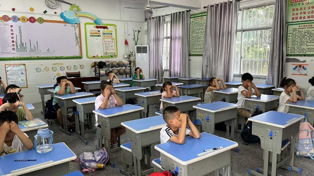 圖為孩子們在做眼保健操。