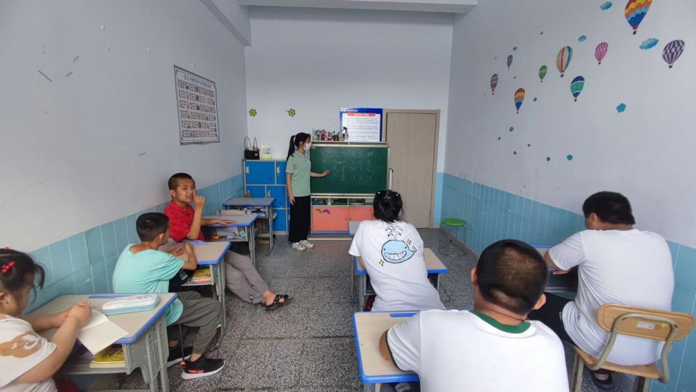 圖為實(shí)踐團(tuán)成員為暑假班上課