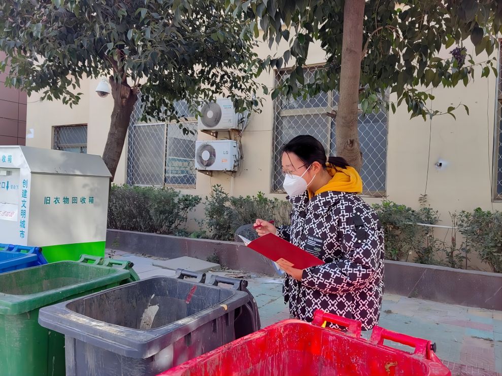12月22日,“變廢為寶”實踐隊的隊員們帶著自己的問題來到了單縣園藝街道辦事處,工作人員熱情接待了實踐隊員,并對實踐隊員提出的問題進行答疑解惑。在與工作人員的交談中,實踐隊員了解到,目前單縣全域的垃圾分類工作正在有條不紊的推進當中,不少社區都已設置垃圾分類設施,并配備相關工作人員進行宣傳監督。短暫交流過后,工作人員帶領實踐隊員參觀了社區的垃圾分類設施,實踐隊員發現社區雖配備較良好的垃圾分類設施,但整體上類別較少,每個類別之間并沒有明顯的界限。與此同時,工作人員也表示,單縣的垃圾分類雖已推行很長時間,但只是從大體上分為“可回收垃圾”“不可回收垃圾”“廚余垃圾”“有害垃圾”四大類,每一類并沒有進行更細致的劃分。