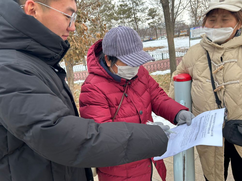 圖為實踐隊員采訪居民張女士(中國青年網通訊員 高延博 攝)