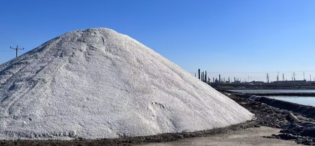 圖為鹽坨近景。中國青年網通訊員 郭明靖 供圖山東省壽光市北濱渤海萊州灣,擁有五百多平方公里的地下鹵水帶,同時日照時間充足,光照熱量豐富,優越的自然條件使得壽光成為我國最大的鹵水產鹽基地。制鹽工人郭師傅向實踐隊員詳細介紹了鹵水制鹽的過程,郭師傅說,制鹽最開始便是要修灘,用紅色磚塊將池底修葺整齊,不能漏水,隨后便會采集地下鹵水,通過制井,提取濃度高、水量大的鹵水,這一步叫上水,接下來利用自然條件曬灘,將井水濃縮成飽和鹵水,然后進行結晶,在春天的時候灌池,最后進行活碴,由兩個人各拉著繩索一端縱橫拉動,繩索在池底移動時帶動鹽粒活動,旺季的時候每日一次,淡季的時候隔日一次。