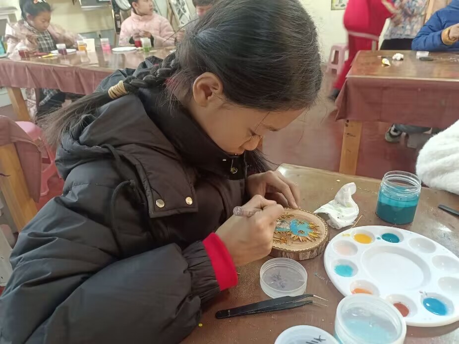 圖為學徒在創作作品。 中國青年網通訊員 邵明陽 供圖在學生進行創作的間隙中,實踐隊員對楊云老師進行了采訪,楊老師來自于藝術世家,收到家中手工藝人的影響選擇繼續傳承這項技藝,作為第五代傳承人,楊老師致力于作品設計和創作的同時,也通過藝術學校的方式將這項技藝傳遞給更多人,不僅讓孩子們來到藝術學校學習一門小技藝,更主動去到各個學校進行教師培訓和非遺進校園和進社區活動。在老師的學生中,實踐隊員發現了兩位特殊人群的孩子,楊老師說,即使他們表達有困難,亦或帶著耳蝸,他們仍表現地更加出色和更具專注力,深深地詮釋了“上帝為他們關閉了一扇門,就會為他開啟另一扇窗”。