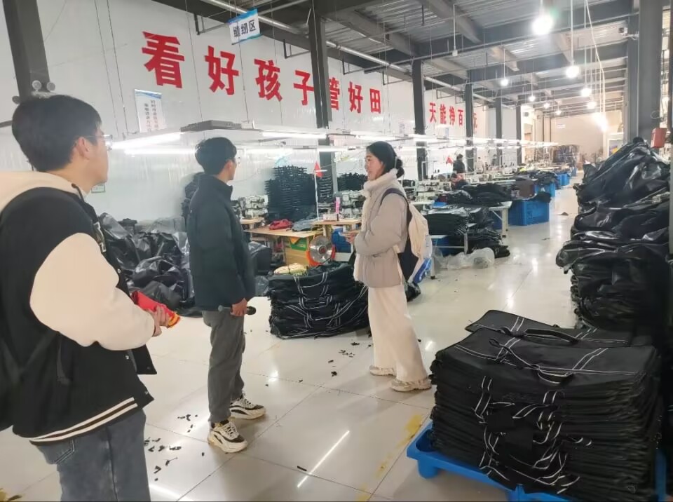 1月15日上午,為深入了解濛洼蓄洪區產業現狀及未來轉型發展的深層動力,實踐團對當地企業進行了走訪考察。沿著總書記考察時的路線,成員們走進了紅亮箱包有限公司,“一人就業,全家脫貧”的標語分外顯目,車間里“噠噠”的縫紉機轉動聲不絕于耳。紅亮箱包有限公司王恒亮廠長是返鄉致富創業的典范,年輕的時候在外地打拼創業,2016年返鄉投資建立了紅亮箱包廠,逐漸成為當地帶動就業、助力脫貧的“生力軍”,當地很多留守婦女通過在紅亮箱包廠扶貧車間就業實現了“家門口的幸福”。據紅亮箱包廠負責人介紹,該扶貧企業解決了當地136人的就業問題,其中貧困戶占62人,目前正在計劃拓寬銷售渠道。負責人帶領大家參觀查看了車間生產線,介紹了相關工藝流程,并表示希望在未來能夠與同學們一起開拓電商渠道,增加銷售業績。