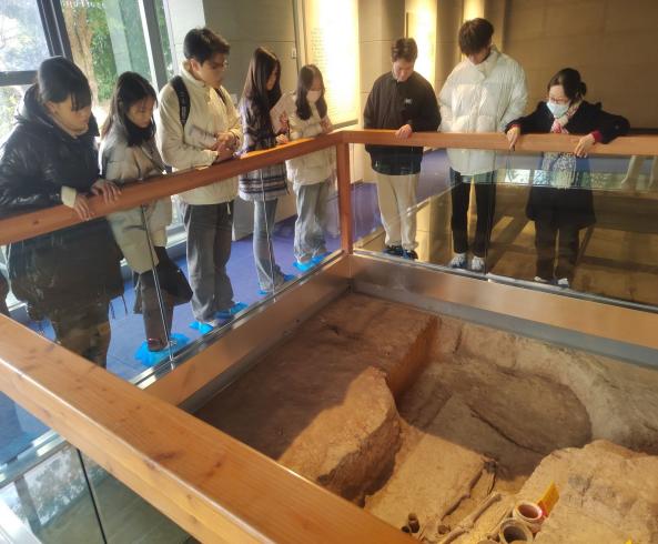 閩在海之中,海為閩人田。福建有著得天獨厚的海洋優(yōu)勢,千百年來,福建先民傍海而居、向海而興、拓海而榮,形成了特色鮮明的海洋文化。第一站,實踐隊來到了表征“福建海洋文化從這里開始”的福建省曇石山遺址博物館,該館是福建省第一座依托于史前遺址的博物館,是福建省唯一入選“百年百大考古發(fā)現(xiàn)”的遺址,彰顯了福建海洋文化的價值和地位。