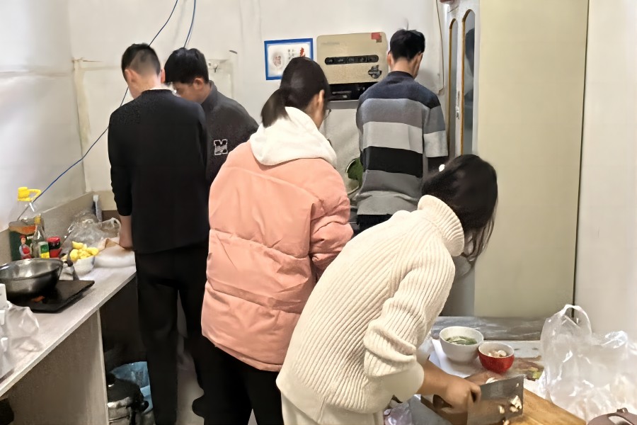 下午四點半,隊員們齊聚廚房進行包餃子活動。綜合事務組成員們外出采購活動所需食材,包括肉餡、配菜等等。志愿者們大顯身手:有的刀工精湛,將食材切的整整齊齊;有的洗鍋擇菜,準備餃子所需的廚具;有的整理飯桌,擺放碗筷、調料……廚房里充滿歡聲笑語,成功出鍋的餃子標志著了活動來到最有收獲感的階段。