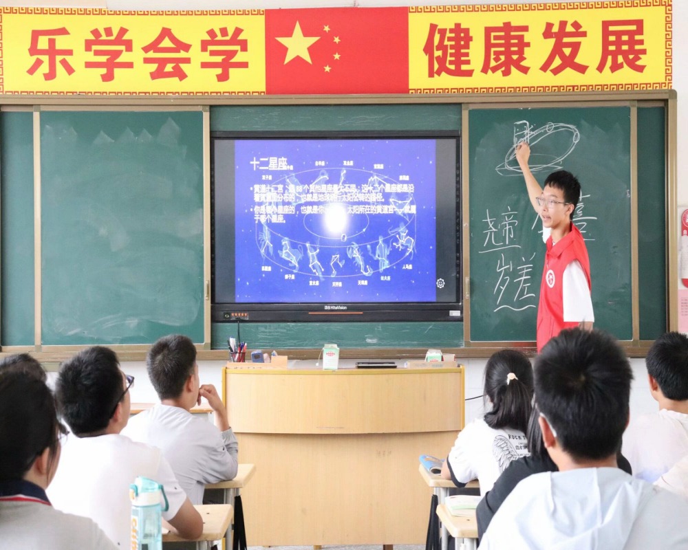視野開闊課海納百川,包羅萬象,在學生們心中激起全方位的浪潮。天文課上,他們跟隨志愿者邁入浩瀚的星河系,解讀黃道十二宮、天球等概念,跟隨暢想的浪潮畫出尋星路徑,同宇宙低語;詩詞課上,不斷變幻的幻燈片呈現出中華傳統文化博大精深的魅力,學生們與詩結伴,與詩同行,以詩為徑入唐朝,一起聆聽唐詩的音韻,觸摸唐詩的生命律動,在華美的辭藻中感受時代的變遷;文學課上,志愿者目光炯炯,娓娓道來,平靜而深沉地勾勒出“唐宋八大家之一”蘇軾的生平偉績,帶領學生們站在這位文學巨匠的肩膀上,品“一蓑煙雨任平生”,了然一生,輕拂衣袖,欣然而去。