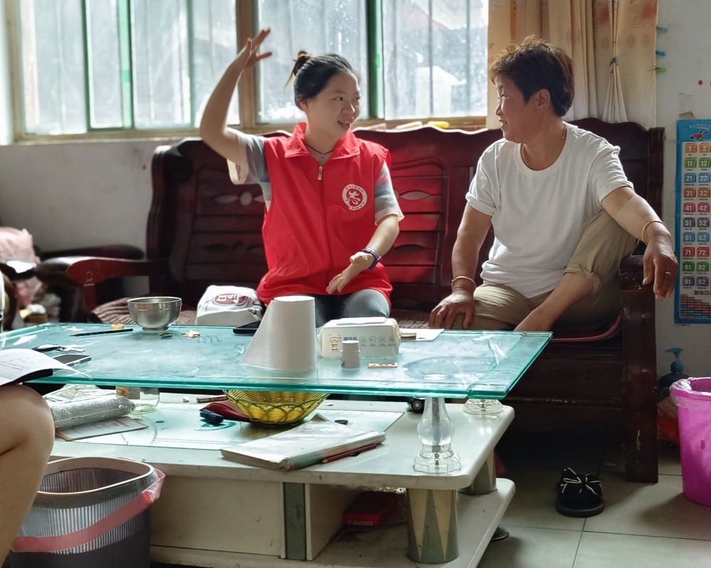 7月13日下午,14位志愿者在被家訪學生的帶領下,一路穿過彎彎繞繞的小巷,經由大片大片的玉米地,推開了學生的家門。家長們將志愿者迎入屋中,熱情招待,雙方圍坐在一席沙發之上,圍繞孩子共話家常。志愿者們既對于學生課堂上認真踏實的優良表現贊賞不已,又旁敲側擊出其它表現中所潛在的心理問題,家長們認真傾聽,并不時發出附和、進行補充。在志愿者的引導下,家長們也從一開始的拘謹轉變成放松,滔滔不絕地談起孩子在家里的表現,仿佛只要有關孩子,家長們的話語便永遠不會終止。
