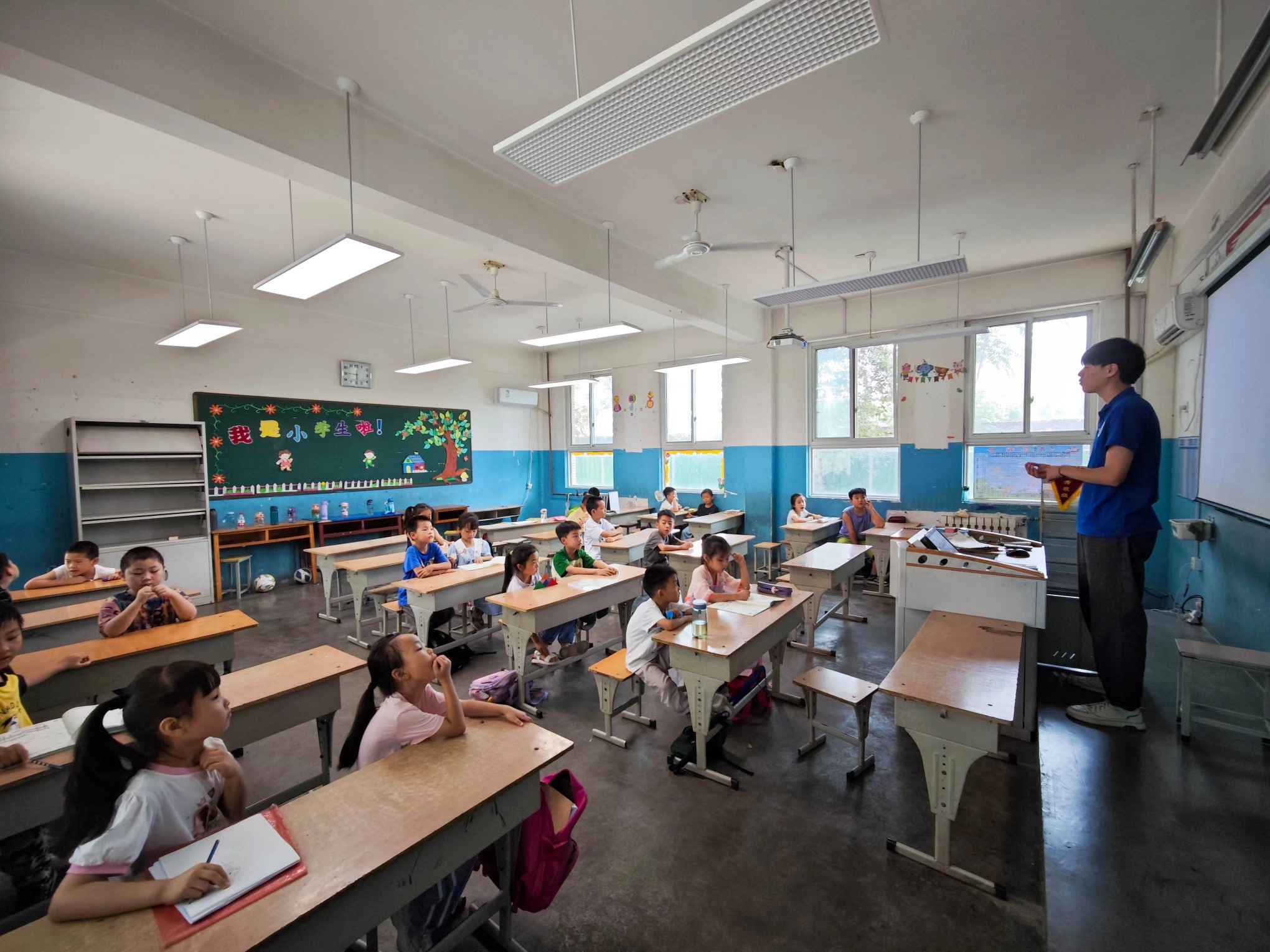 在講解過程中,團隊成員李安爍盡量使用易懂的語言,同時配合生動的圖片和動畫,幫助孩子們更好地理解。而團隊成員萬里曉爍則一直在一旁關注著課堂的進展,維持課堂秩序。當有個別孩子開始交頭接耳或者注意力不集中時,團隊成員萬里曉爍會走到身邊提醒他們集中注意力,認真聽講。在互動環(huán)節(jié)中,萬里曉爍也積極參與其中,與小朋友們一起完成游戲和任務,為孩子們提供指導和幫助。