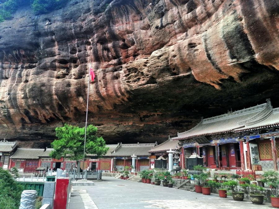 仙人崖石窟、古建筑群的建造最早可以追溯到北魏時期,經過唐、宋、明、清等朝代建造和修繕而成,距今已有一千五百多年的歷史。這里是釋、道、儒三家和諧共存、文化相得益彰的風景勝地,因“天生一個仙人洞,無限風光在險崖”得名“仙人崖”。