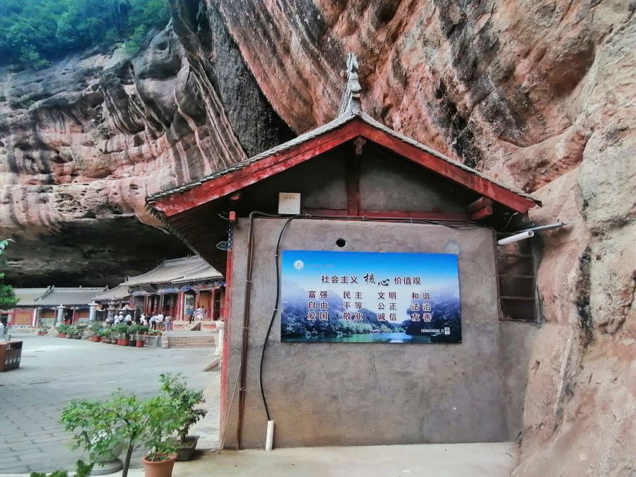 社會主義核心價值觀根植于中華優秀傳統文化,彰顯中華文明的先進基因。西崖的灰墻上印有“富強、民主、文明、和諧……”的二十四字宣傳語。文化不能墨守成規、因循守舊,要緊跟時代、創新發展。仙人崖石窟在保留原有特色的基礎上,唱響新時代主旋律。