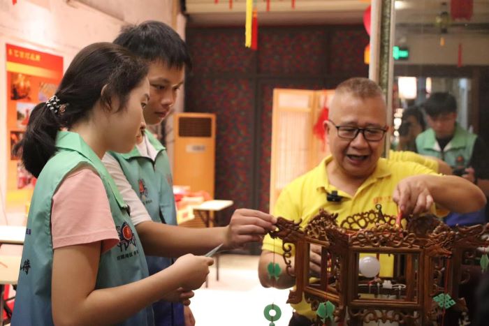 隨后,隊員們來到江門蓬江開展實地調研,與當地居民和游客進行深入交流,腳印遍布啟明里、三十三墟街、五邑華僑博物館、江門文化館等地。實踐隊還有幸邀請到廣東省省級非物質傳承人——東藝宮燈第四代傳承者李仰東先生進行采訪。通過李先生的精彩講述,隊員們更加深刻地理解了東藝宮燈的歷史淵源與文化價值,并感受到其作為僑鄉文化的重要組成部分,所蘊含的深厚情感與藝術魅力。
