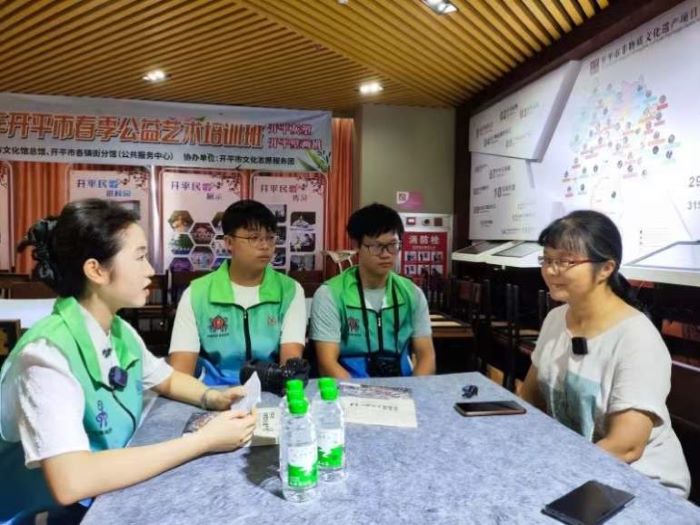 實踐隊員們首站來到江門開平,對僑鄉傳統建筑遺產進行走訪調研,并采訪了開平市文廣旅體局藝術和非遺股股長潘艷嬌及開平市文化館館長羅順飄。經二位講解,隊員們了解到,開平政府迄今在文化傳承方面取得許多成就,同時部分非遺項目也面臨后繼無人的危機。