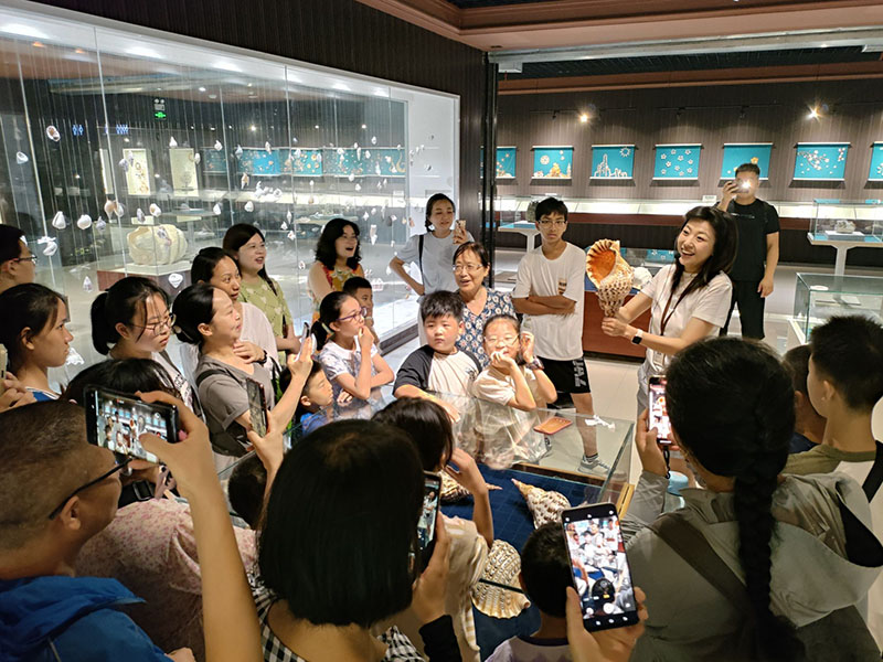 在整個參觀過程中,實踐隊員們發現游客中絕大多數都是親子團體。實踐隊員們隨機采訪了多位游客,其中一位李先生告訴實踐隊員:“青島貝殼博物館是親子游的優選之地!豐富的貝殼藏品在展現自然奇趣的同時能夠激發孩子探索欲。”另一位王女士也表示道:“與貝殼的互動體驗讓孩子親手觸摸海洋記憶,增進親子情感同時拓寬視野,共赴一場關于海洋與生命的奇妙旅程!”此外,博物館工作人員也告訴實踐隊員,青島貝殼博物館積極與學校合作,開展館校聯動活動。通過組織學生參觀博物館、參與研學項目等方式,將貝殼文化引入校園,讓學生在實踐中學習,在體驗中成長。這些活動不僅能夠增進公眾對海洋生物及貝殼文化的了解,還能夠提升科學素養和環保意識,具有重要的教育意義和社會價值。在采訪過程中,許多游客也表示,通過此次游覽,他們更加意識到保護海洋環境、維護生態平衡的重要性,并愿意從自身做起,采取實際行動支持海洋保護事業。