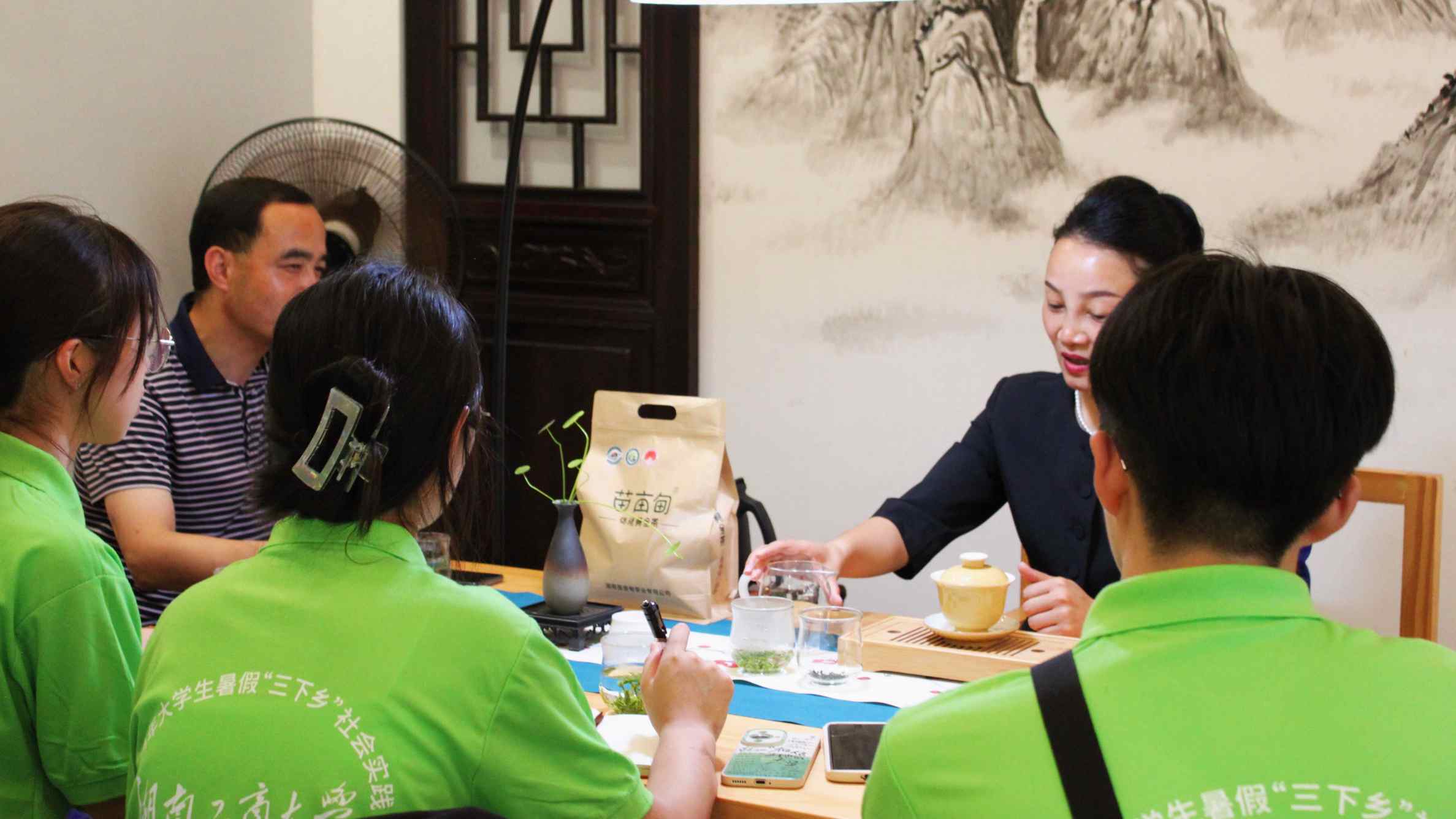 湖南,作為中國重要的茶葉生產基地之一,產茶量居全國第二位,素有“茶鄉 ”之稱。隨著全球經濟一體化的不斷深化,湖南茶葉產業也面臨著前所未有的機遇與挑戰。為了解湖南省茶葉產業的發展現狀,探尋如何實現新質生產力驅動下湖南省茶葉產業的可持續發展,湖南工商大學前沿交叉學院茶策湘行隊分別前往張家界永定區和湘西土家族苗族自治州展開調研。通過采訪當地莓茶產業工作者,實地調研莓茶產業園與加工工廠,成員們了解到張家界市永定區是“中國莓茶之鄉”,莓茶產業在全區經濟社會發展中占有重要地位。莓茶作為功效茶有著保護肝臟、改善睡眠、抗氧化和清熱潤嗓的功能。由此,張家界莓茶企業也推出了莓茶面膜、莓茶護肝膠囊和莓茶口服液等一系列莓茶的深加工產品。充分利用當地的旅游資源,推動茶旅融合發展,為莓茶的對外銷售注入了新的活力,推動張家界莓茶產業的高質量發展。