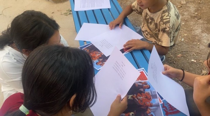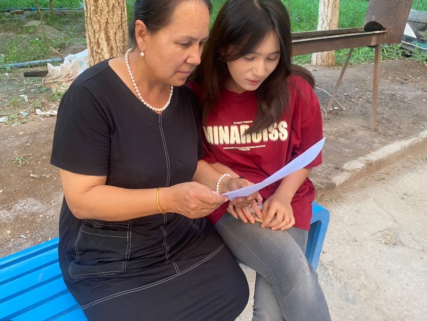 木義色爾通過詩歌朗誦活動帶領孩子們體驗紅色精神后,與孩子們一同為社區中老年人群解釋紅色精神內涵。團隊成員木義色爾通過訪談的方式與居民進行紅色歷史探討,將紅色精神背后的故事與居民的兵團歷史記憶相結合,使居民能更好的了解和感受紅色精神。