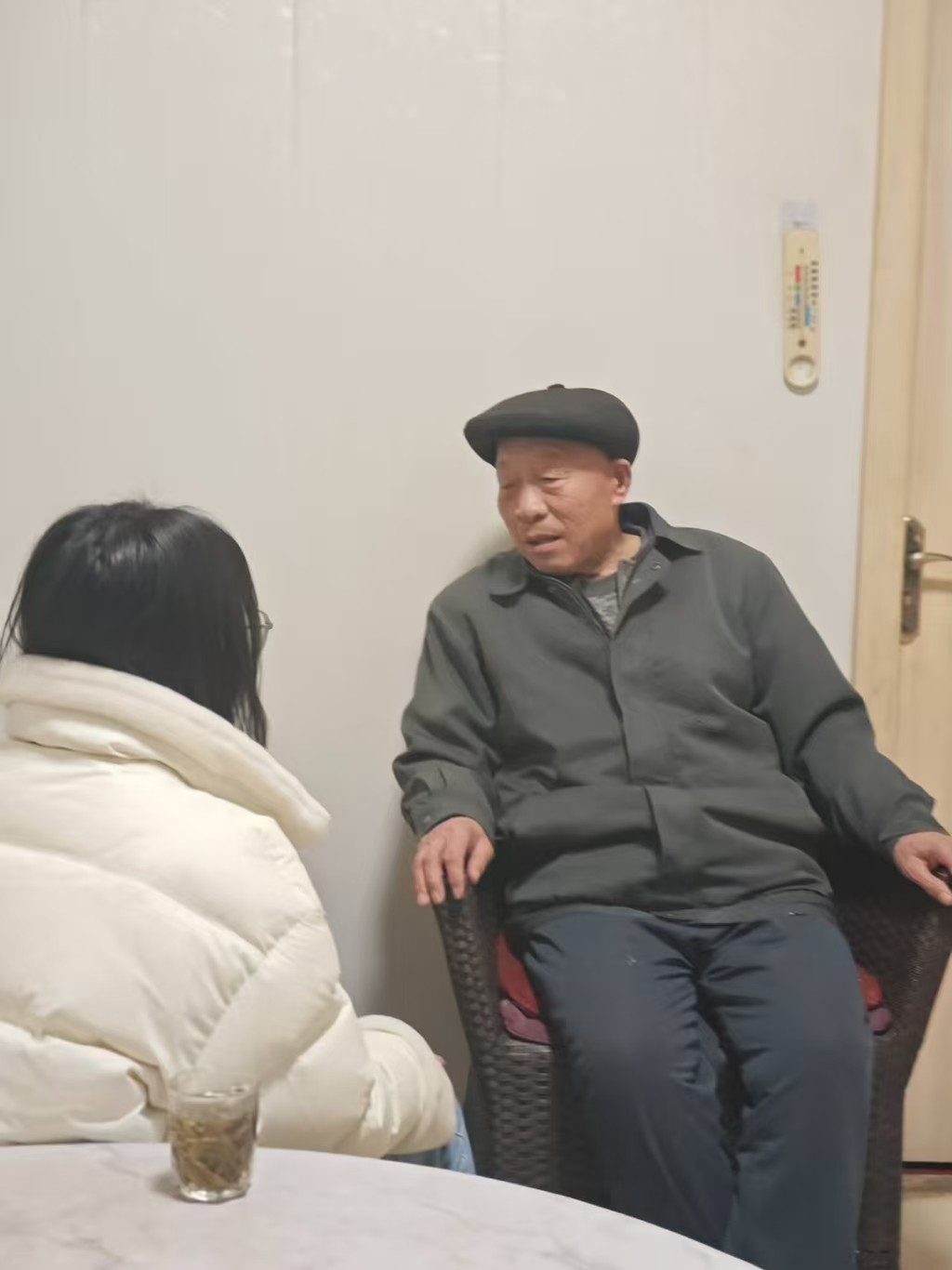 團(tuán)隊成員馬展藝首先拜訪了一位74歲的老人。幾年前,老伴去世后,他選擇獨自留在家鄉(xiāng)生活。雖然兒女多次勸他搬去城市,但他放心不下家中的家畜,也對城市生活感到不適應(yīng)。老人的身體還算康健,生活來源主要依靠養(yǎng)老保險和兒女的定期補貼。女兒每兩三周會來探望一次,兒子則常年在外務(wù)工,很少回家。盡管獨自生活,老人依然保持著樂觀的心態(tài),晚上會去廣場看廣場舞,偶爾使用健身器材鍛煉身體。社區(qū)工作人員也會定期探望,給予他一些生活上的幫助。