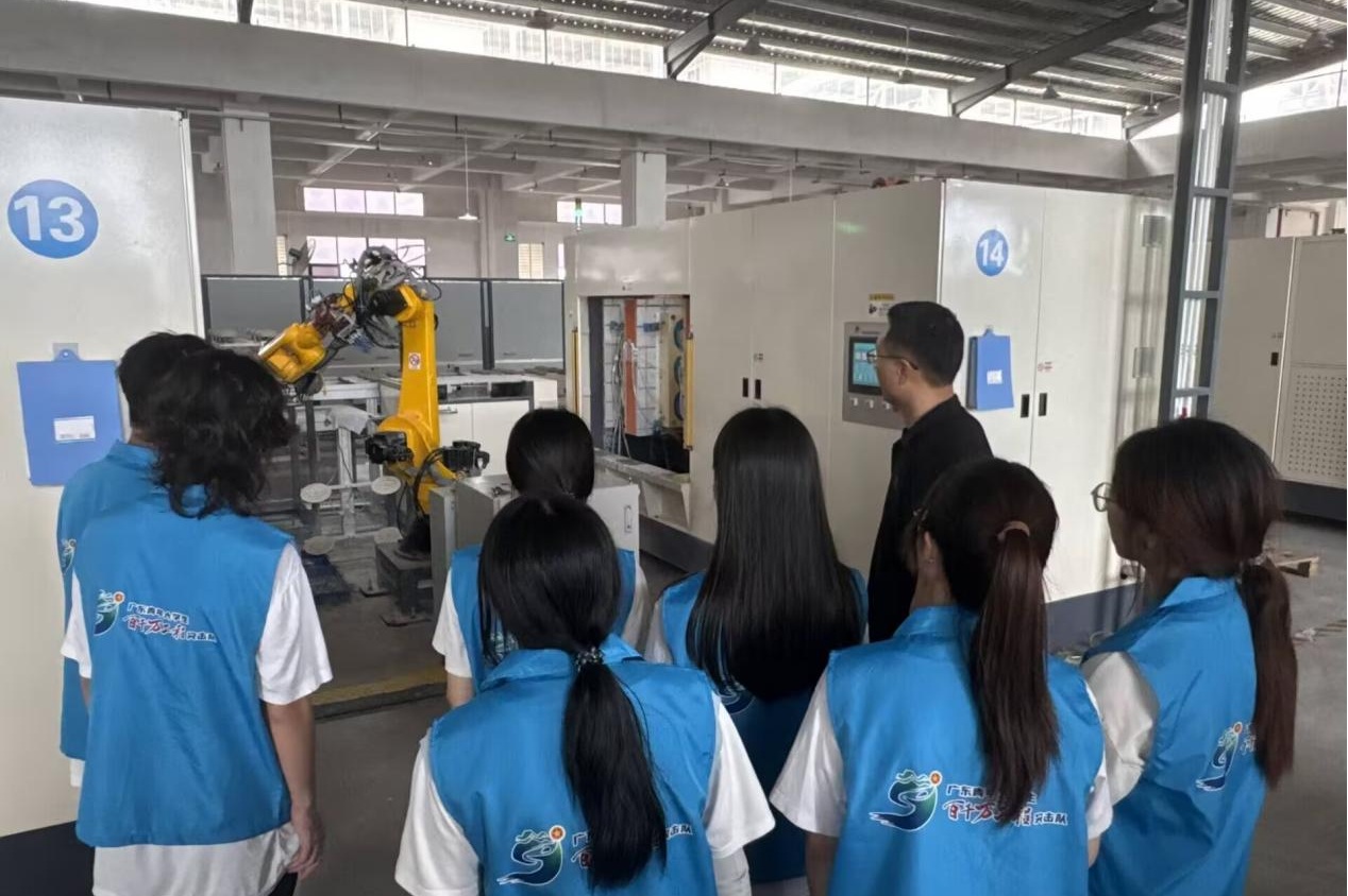 圖為企業(yè)高管及楓溪鎮(zhèn)團委書記帶領團隊參觀廣東四通集團股份有限公司生產(chǎn)線。戚澍騰 供圖