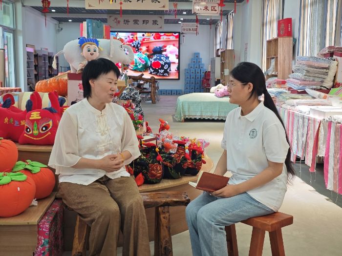鄭光云老師表示作為新一代紅嫂,要傳承、發揚非遺傳統手藝;貞泟摻缮綃寢寜艄S的初衷,鄭老師說“我是沂蒙山人,這里是紅嫂的家鄉,我想要把父老鄉親發動起來,讓人們在家門口就可以賺到錢,鄉鎮領導也十分支持,所以我回到了這里,創立了蒙山媽媽夢工廠。”回想起創業過程中的困難,鄭老師十分坦然:“作為一個企業家,沒有不困難的時候,每一個企業家都會遇見坎坎坷坷,只有去克服它,不斷分析它,擁有永不服輸的精神,對自己充滿信心你總會戰勝困難。”當被問及大學生能為傳承非遺文化做些什么,鄭老師建議年輕人要多實踐,多與非遺老師溝通,只有看的見了,摸得著了,你才會更清楚的知道你想要做什么。鄭老師表示,作為沂蒙人,傳承沂蒙精神、傳承紅嫂精神、傳承非遺文化,這是義不容辭的責任,作為傳承人要讓手工藝產品銷售出去,讓更多人知道創新產品,不僅要傳承傳統文化,也要讓非遺與鄉村振興聯合在一起。被問及工廠下一步的發展目標,鄭老師說“我這一輩子只干這一個活了,那就是針線活,一輩子只端一個筐,針線筐,我從13歲就開始做老粗布這種文化產品,到現在已經有40多年了,我下一步的打算就是不再改行了,讓更多的年輕人走進非遺這個行業里來,創造更多的價值,讓手藝人手中產品走向全世界。”