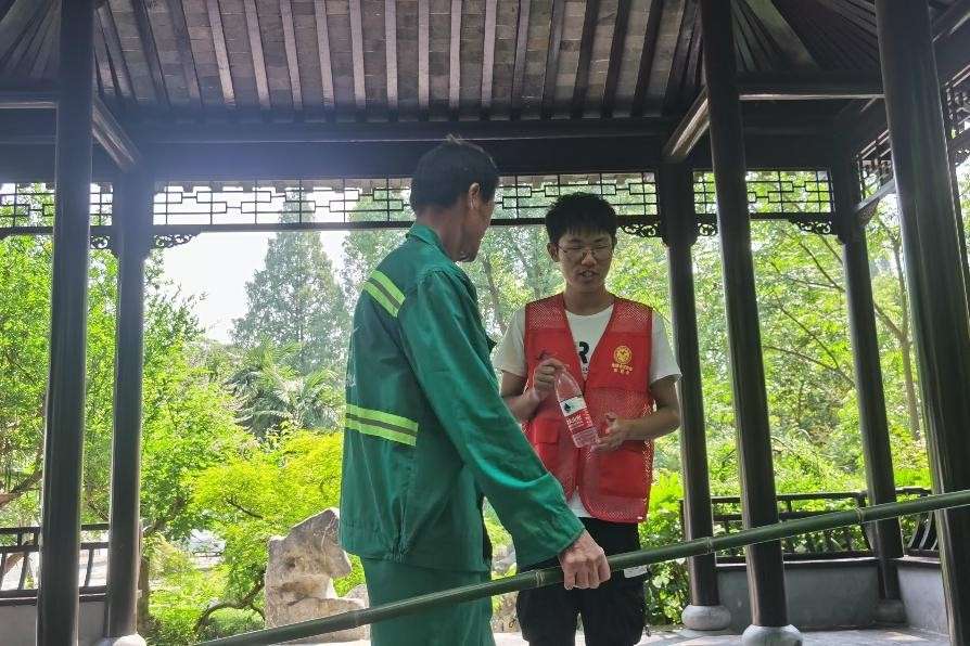 7 月 22 日,為加強(qiáng)保護(hù)環(huán)境的意識(shí),促進(jìn)生態(tài)文明的發(fā)展,社會(huì)實(shí)踐隊(duì)來到安徽滁州瑯琊山風(fēng)景區(qū)進(jìn)行實(shí)地考察,了解并體驗(yàn)了一線環(huán)衛(wèi)工人的日常工作。