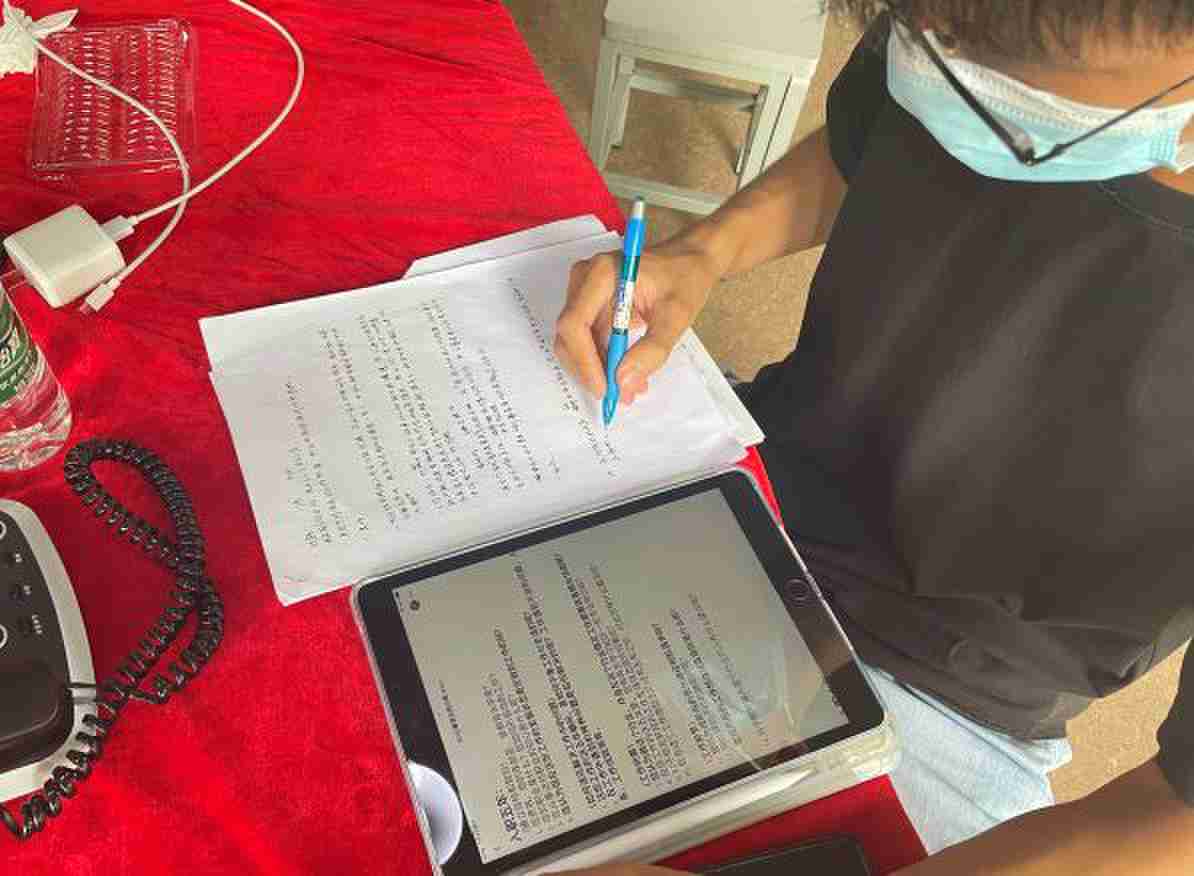 圖為入職五年的楊老師正在做調(diào)查問卷,目前在創(chuàng)業(yè)階段,是一位文創(chuàng)工作者。
