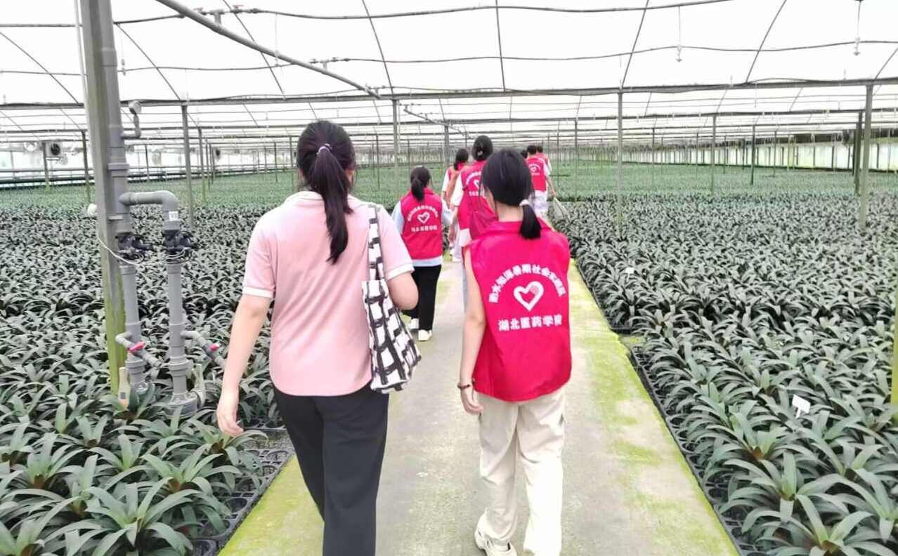首先,酌水知源暑期社會實踐隊全體隊員一起到湖北農青科技園藝有限公司參觀花卉基地,經過基地的負責人介紹,隊員們了解到:大柴湖高鐵花卉小鎮位于武荊高速北側新村村至四新村之間,東起羅城村,西至滬蓉高速鐘祥連接線,南到新村村,北抵沿江高鐵鐘祥南站,總面積4.7平方公里,是“十四五”時期荊門市農產品“五個一”工程之一的“一枝花”工程核心區,也是鐘祥市重點支持的“3+6"產業集群之一。