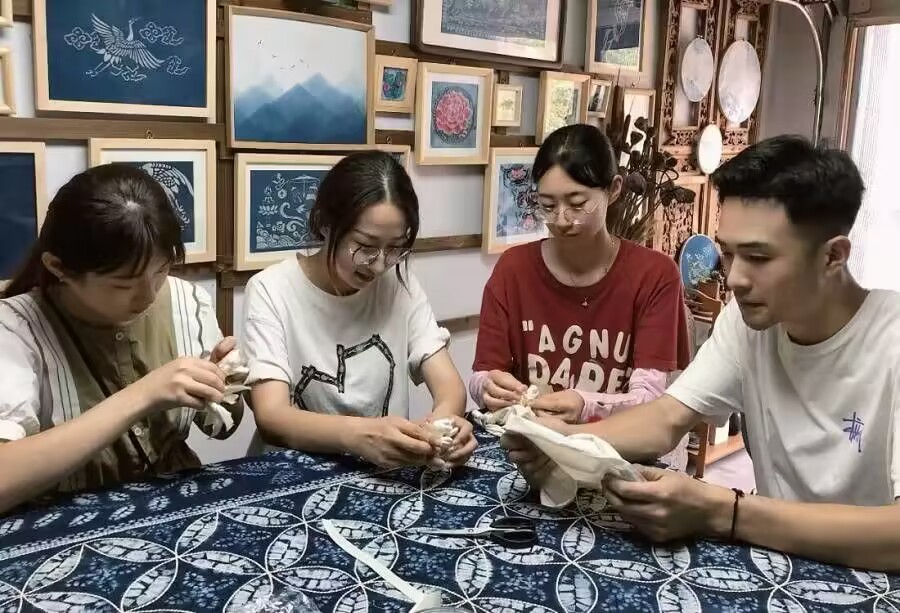 絲竹悠悠,唱不完慢詞清曲;墨香濃濃,描不盡煙波畫船。燦爛絢麗的傳統文化是國人的驕傲、國家的底氣,也是中華民族的靈魂。中共中央發文呼吁加強非物質文化遺產保護,為了積極響應這一號召,2023年7月15日,曲阜師范大學地理與旅游學院“非遺”探查實踐隊隊員來到山東淄博“齊梅吹雪”工作室,了解并體驗藍印花布工藝的制作過程,體驗非遺手工藝人精神的難得,助力新時代下非遺手藝的傳播和創新。