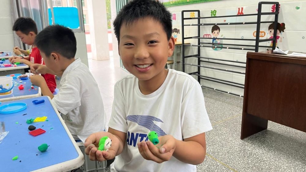 與此同時,團隊成員非常注重孩子們的全面發展。在安排各種必修課程的基礎上,我們給孩子們安排了美術課、音樂課、閱讀課、折紙課、彩泥課等等課程,孩子們積極性特別高,充分發揮自己的想象力和創造力。在娛樂的同時,這些課程培養了他們的動手能力和團結協作能力,豐富了他們的知識面,陶冶了他們的情操。在體育課上,我們帶著孩子們做熱身運動,帶著他們玩各種游戲,既增強了他們的體魄,也拉近了團隊成員與孩子們之間的距離。希望這群孩子永遠開心向上,永遠明媚熱烈。