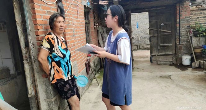圖為實踐隊員深入農戶家中開展問卷調查 闞常琳供圖