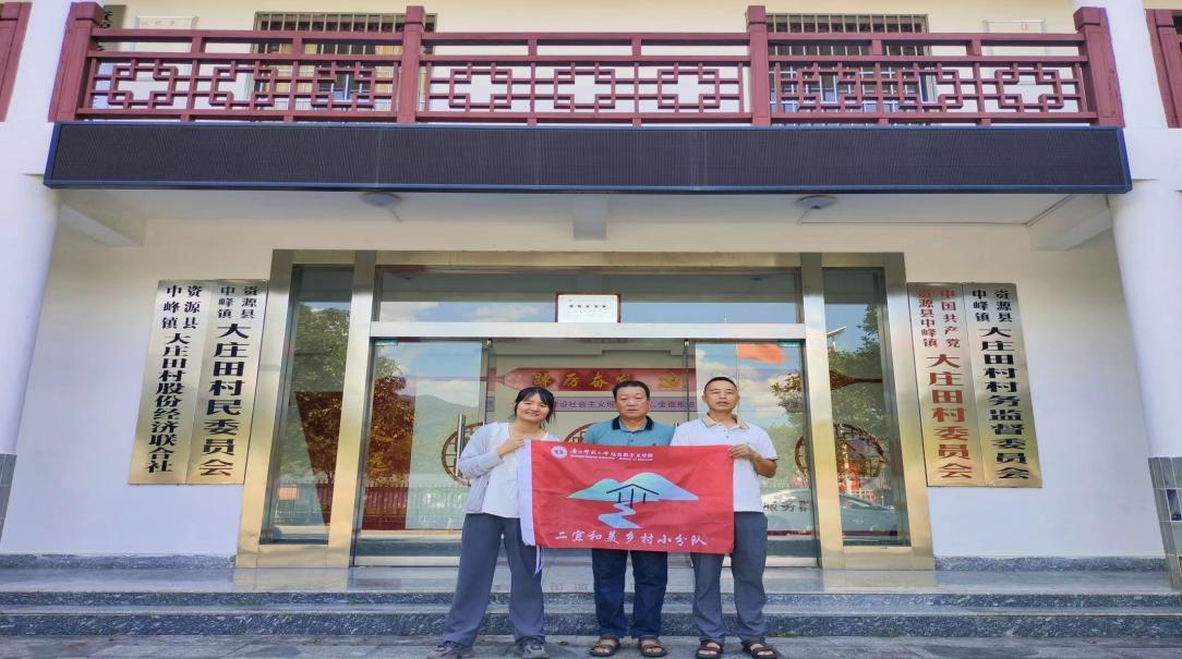 圖為團隊成員與大莊田村村委干部在村委會前的合影。