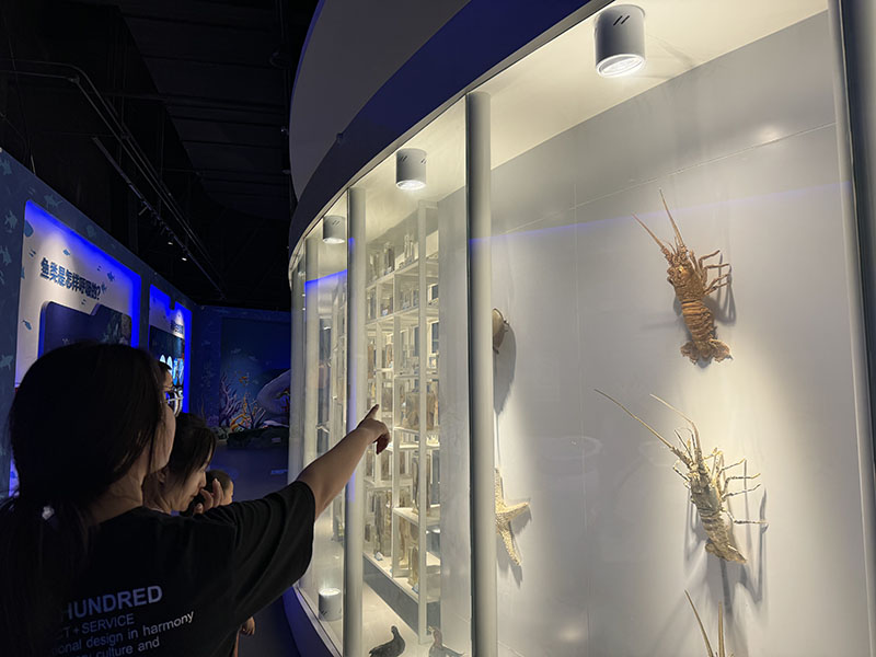 圖為實踐隊員與游客共同了解海洋生物標(biāo)本。中國青年網(wǎng)通訊員 田如玉 供圖
