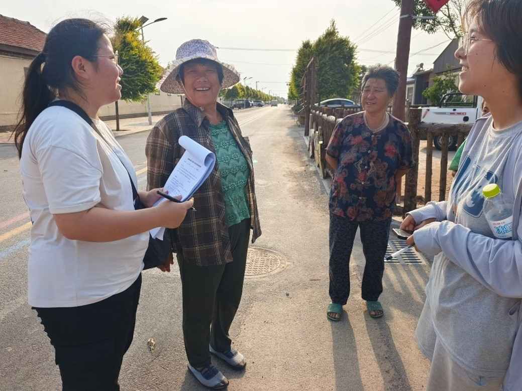 圖為村民向實踐隊員講述村莊基本情況。中國青年網通訊員 翟雨菲 供圖