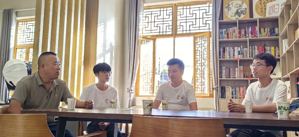 圖為實踐隊員與寧家村書記寧振弟探討當地發展狀況