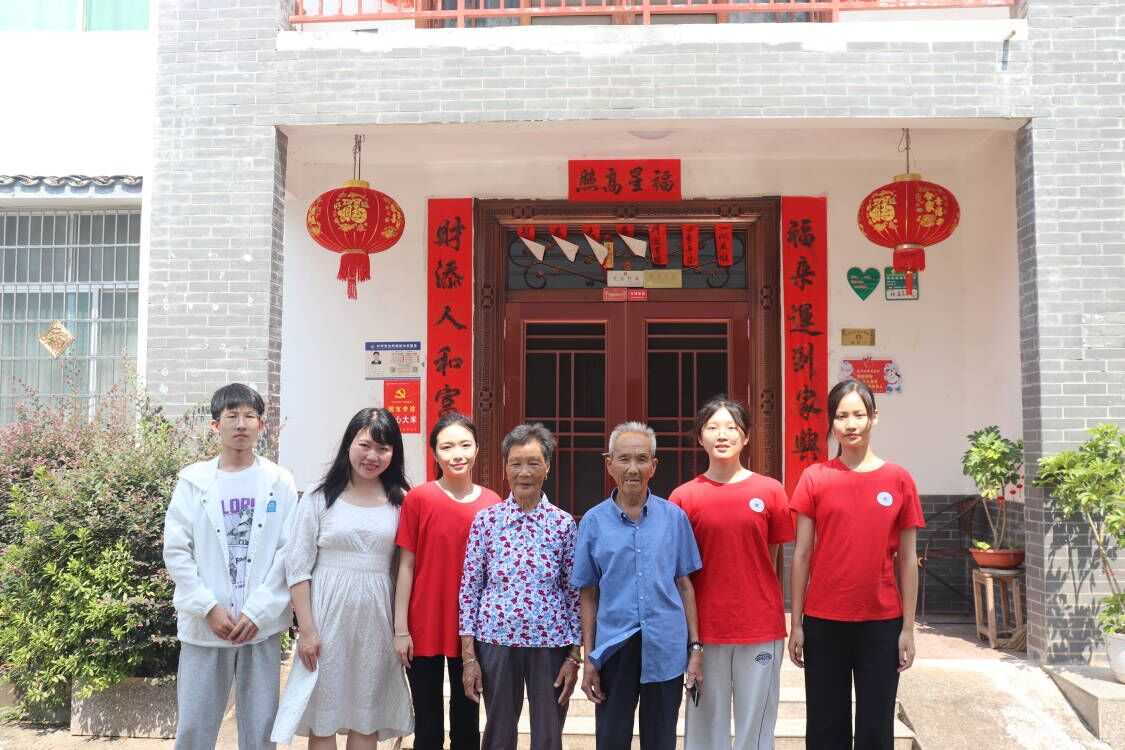 圖為帶隊老師和實踐隊員們與兩位老人的合照。大學校園網通訊員 袁燚珍 攝