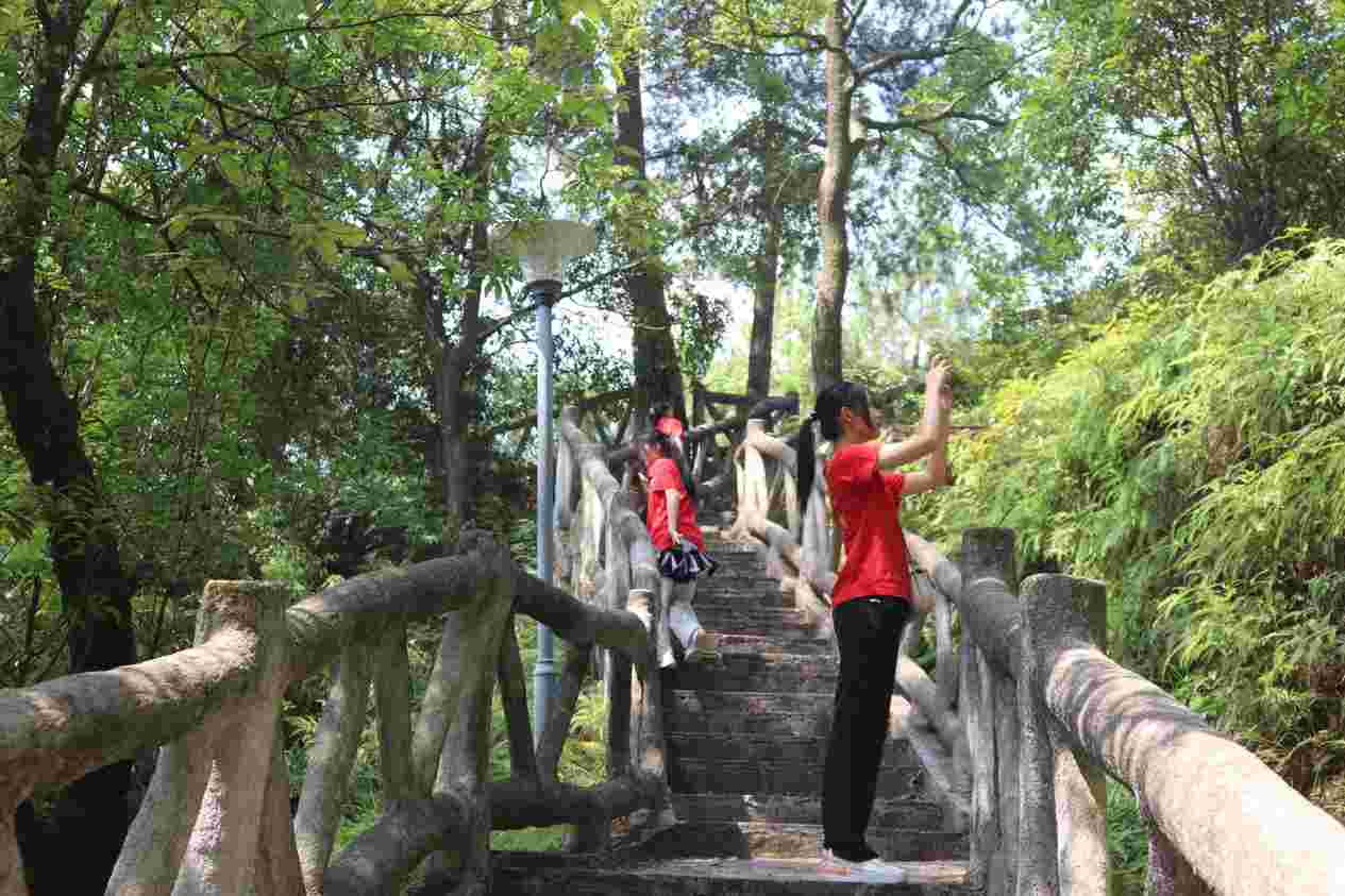 圖為實踐隊員在后山仰望十七棵松。大學校園網通訊員 袁燚珍 攝
