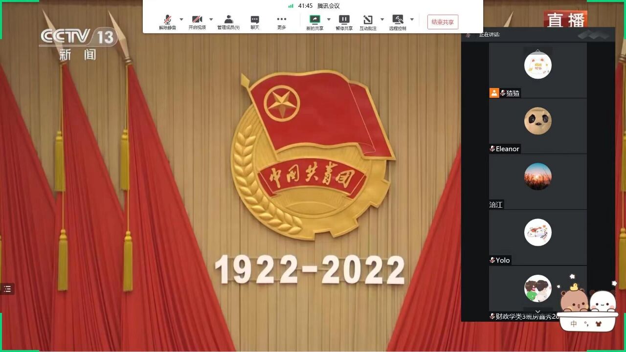 7月2日,為明確此次實踐的目的及意義,加深團隊成員對此次實踐的認知,召開線上騰訊會議共同觀看視頻學習習近平總書記在慶祝共青團成立100周年大會上的重要講話精神并交流討論學習心得。團隊成員之間暢談在中國革命史、新中國發展史、社會主義建設史、改革開放實踐史中有關共青團與新青年的新體會與新認知,此外積極和思政老師溝通交流彌補宣講材料存在的不足之處,虛心向學長學姐請教流動宣講需要注意的細節。