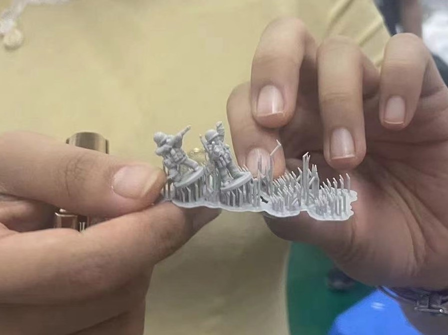 實踐出真知,在張晨老師詳細講解之余,實驗室工作人員為實踐團隊成員們展示了目前市場較具特點及優勢的LCD-3D打印機操作方法。眾所周知,LCD技術在3D打印技術中是近幾年開始流行的新興技術,使用的是紫外線照射固化樹脂成型方式,其成本大大低于DLP,精度媲美DLP。實踐團隊成員一旁學習實驗室工作人員操作步驟大致如下:①設置好所選擇打印圖像;②開始操作,在計算機及顯示屏電路的驅動下,由計算機程序提供圖像信號,紫外光透過透明區域照射樹脂槽內的光敏樹脂耗材進行曝光固化。在此處可以觀察到在每一層固化結束后平臺托板將固化部分提起,讓樹脂液體補充回流,平臺再次下降,模型與離型膜之間的薄層再次被紫外線曝光;③經過一段時間的等待,在逐層固化上升打印之后映入眼簾的即所設置的精美的立體模型。精美制作的產品在手中顯得十分小巧精致。以此證實了LCD技術打印的成品精度高,打印過程中成型速度較快等優勢。