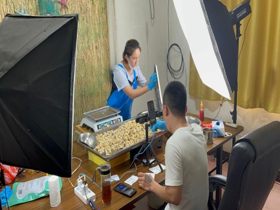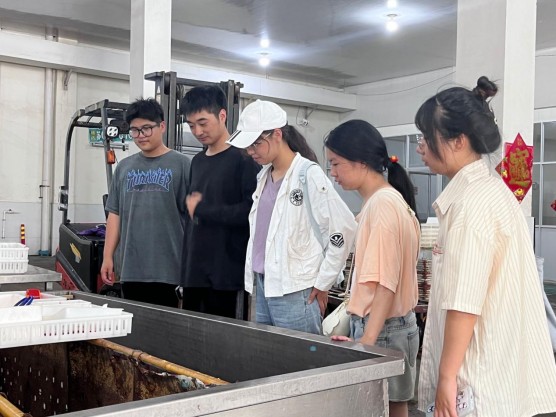 調研團首先來到連云港市景華食品有限公司開展調研,在公司負責人韓先生的帶領下,參觀了公司的儲藏室和速凍庫,并了解到相應的冷鏈銷售和物流運營方面的現狀。隨后,團隊成員前往海頭電商產業園,網紅孵化中心的王書記向隊員們展示了部分海頭鎮特色網紅零食,參觀了公司的產品直播間,了解了海頭鎮電商產業園曲折的發展歷程。