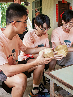 (圖片6:實踐團成員體驗拉祜族編制技藝)