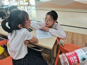 留校實踐團成員和“小候鳥”們圍坐在一起,隊員們根據(jù)采訪問題,與“小候鳥”進行了親密的溝通交流,并詳細地記錄了采訪的內(nèi)容。有些小朋友們在最開始進行交流時還有些靦腆害羞,不敢表達,但在隊員們的耐心引導(dǎo)下,還是漸漸敞開了心扉,愿意跟隊員們表達心里的一些想法。隊員們在采訪的同時,也同小朋友們分享自己的童年趣事,拉近與小朋友之間的距離,調(diào)節(jié)采訪的氛圍,讓現(xiàn)場充滿了歡聲笑語。通過跟“小候鳥”的溝通交流,隊員們感受到了他們對生活的熱情,對父母的關(guān)心與愛;同時,也驚嘆于他們的乖巧勤勞。他們有時候揣著心事卻無人分享,父母無法常常陪伴在身側(cè),但他們對父母是體諒的,是理解的。暑期對于“小候鳥”們來說是非常珍貴的一段時間,他們熱烈地渴望著父母的陪伴。除此之外,根據(jù)隊員們的了解,“小候鳥”們有著較好的飲食習(xí)慣,挑食的習(xí)慣不常見,注重攝入牛奶、果蔬。