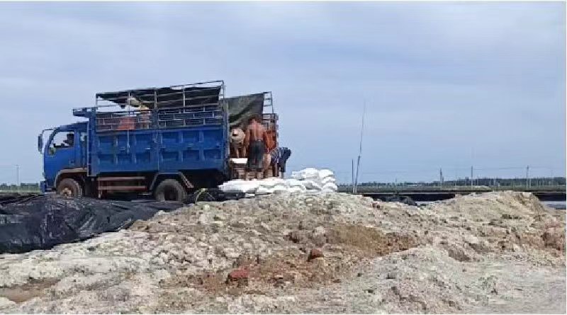 (圖為鹽工在搬運(yùn)海鹽去進(jìn)行下一步加工)