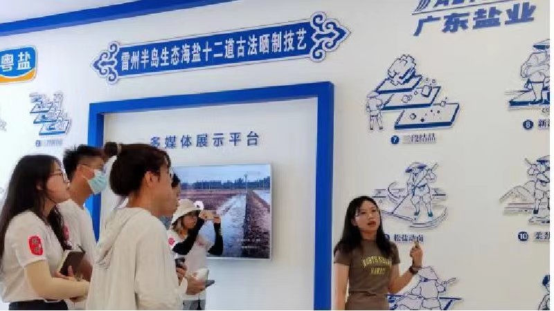 (圖為徐聞鹽場(chǎng)徐盈盈帶領(lǐng)“啟仰”隊(duì)員學(xué)習(xí)雷州半島生態(tài)海鹽十二道古法曬制技藝)