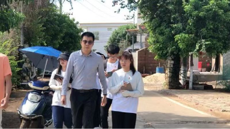 (圖為放坡村第一駐村書記馮磊與“啟仰”隊(duì)員在村內(nèi)走訪)