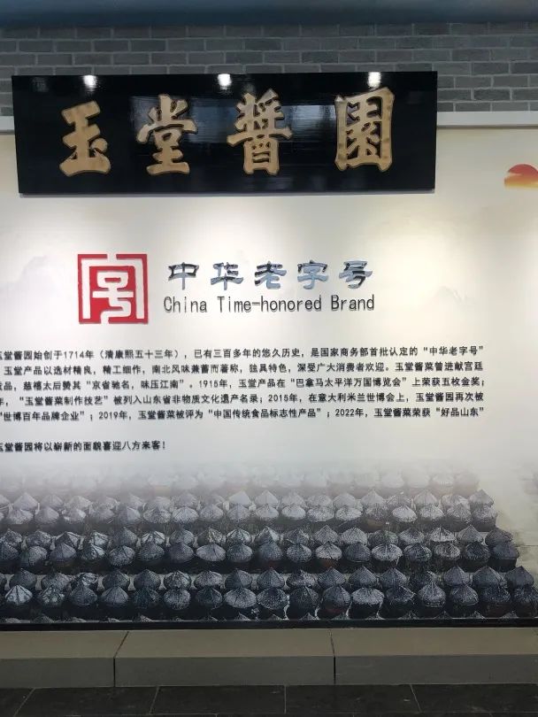 運河搖起千年水,玉堂飄來百年香,在負責人的介紹下我們了解玉堂醬菜產業的歷史淵源。玉堂醬園始建于1714(康熙五十三年),至今已有三百多年的歷史。三過百年,運河百舸爭流,玉堂百轉周折。玉堂人冷長連潛心研究,吸取經驗教訓,留江南風味之長,取地方風味之優;梁圣銘在產品的地方化、多樣化下苦功夫;經過多代玉堂人的不懈努力,玉堂醬園不斷發展壯大。同時在不斷的發展之中,玉堂醬園企業也形成了自己獨特的玉堂文化,在企業的經營理念上企業強調要“為商以德,誠信為本;貨真價實,童叟無欺。”在企業精神上堅持“持續改進、不斷提高、與時俱進、追求卓越”等。