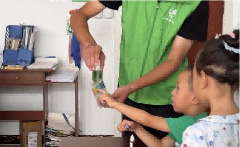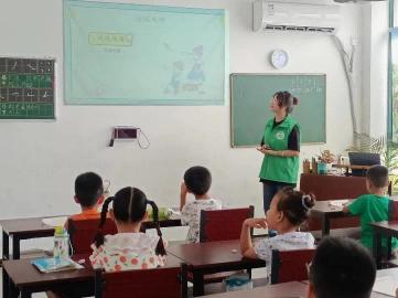 調(diào)研期間,實踐團來到當(dāng)?shù)嘏嘤?xùn)班,開設(shè)環(huán)保主題教育課堂,培養(yǎng)青少年愛護(hù)環(huán)境、踐行垃圾分類的好習(xí)慣。實踐團成員向小朋友們展開垃圾分類內(nèi)容介紹,并結(jié)合“垃圾分類大富翁,綠色環(huán)保小衛(wèi)士”的游戲來檢驗小朋友們的學(xué)習(xí)成果,在寓教于樂中幫助小朋友們更好地理解。