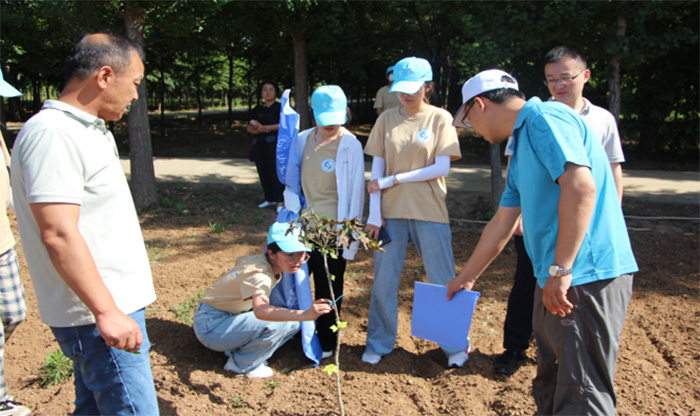 7月7日上午,實踐團在指導老師帶領下來到了淄博市鐵山林場,即淄博市林木種質資源保護中心進行參觀學習。在基地負責人帶領與講解下,實踐團對林場多個主題園區進行了近距離觀察學習。經走訪交流,了解到淄博市鐵山林場作為國有林場的主要職責是對林木種質資源進行收集和培育,對森林資源進行保護和管理,對全市林木種質資源進行普查和收集,利用對林木種質資源的潛在利用價值的分析進行林木良種的選育、引進、科研及科技示范推廣。這些工作為森林面積的擴大、森林資源質量的提高奠定了基礎,有力促進了生態、社會和經濟效益的增長。此外,實踐團還進一步學習了林場在植株養護和電子建檔方面的典型經驗做法,為提升專業素養和實踐技能奠定了基礎。