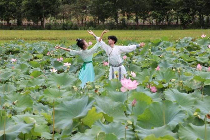 舞蹈IP共塑文化名片。拍攝組以專業(yè)的攝影技術和藝術修養(yǎng),打破傳統(tǒng)農(nóng)特產(chǎn)品的宣傳方式,打造專屬連南瑤族自治縣的“舞蹈+文化”IP。團隊成員以影像為媒,運用4K航攝及多種拍攝手法將創(chuàng)新性地連南瑤族自治縣農(nóng)特產(chǎn)品擬人化,多場景、全方位地展示了水稻、荷花、水靈芝的生長過程,為產(chǎn)教融合的協(xié)同發(fā)展注入了新興活力。