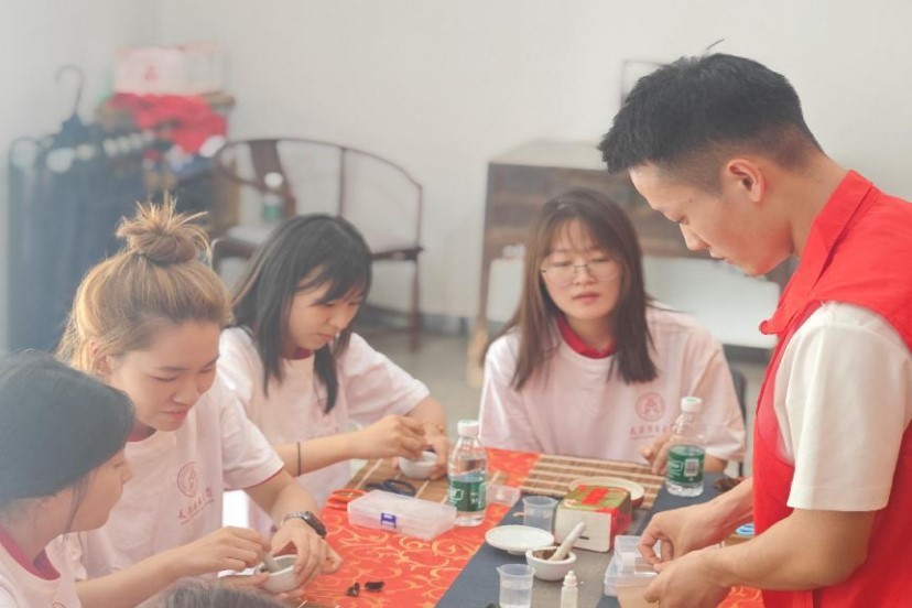 實踐團成員勇擔新的文化使命之責,將黨史教育與文化傳承進行有機融合,在天津市黨的建設與黨史故事思政課重點實驗室,打造理論學習傳播大課堂,實踐團成員通過講述“航母之父”劉華清與胡福明教授的感人故事,引領青少年穿越時空,與黨的光輝歷程對話,開展了一堂生動的愛國主義教育課。在北辰區果園新街新時代文明實踐站,實踐團成員親炙非遺沉香技藝,從研磨至起篆,每一步都承載著對傳統文化的深情與敬意,沉香之韻,如同清泉,沁潤心田,堅定了實踐團成員傳承與創新我國優秀傳統文化的信念。理論與實踐齊飛,黨史光輝與非遺魅力交相輝映,共同繪制新時代的文化新畫卷。