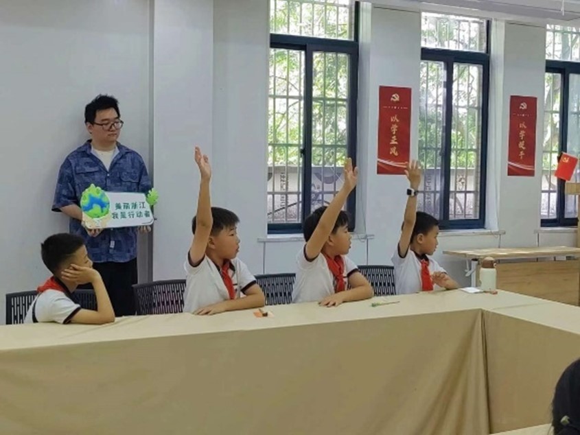 為深入社區,社區兒童對環境保護的認識,培養他們對自然生態的尊重與愛護之心。因此微塵小隊來到錢塘區多藍水岸社區,以其獨特的創意,為小朋友們呈現了一場別開生面的“綠色”宣講。在宣講過程中,小隊成員巧妙地將在中國濕地博物館與西湖博物館學習到的豐富環保知識融入生動的案例中,通過引人入勝的講述,讓孩子們仿佛親身經歷了那些關于濕地保護、生態平衡的感人故事。宣講中,小隊成員們不僅為其展現了濕地與西湖的壯麗景色,更深刻剖析了生態保護的重要性與緊迫性,激發了孩子們對自然生態的濃厚興趣與深切關懷。
