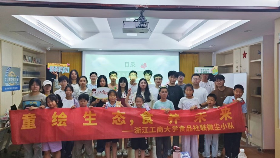 在快速發展的現代社會中,生態文明建設日益成為國家發展的重要議題。隨著城市化進程的加快,人與自然的和諧共生顯得尤為重要。微塵小隊積極響應國家號召,深刻認識到青年學生在生態文明建設和社區服務中的重要作用。因此,2024年7月,由浙江工商大學食品與生物工程學院社團聯合會組成的微塵小隊以“童繪生態 食養未來”為主題進行了一系列暑期社會實踐活動。——微塵小隊暑期社會實踐團總結